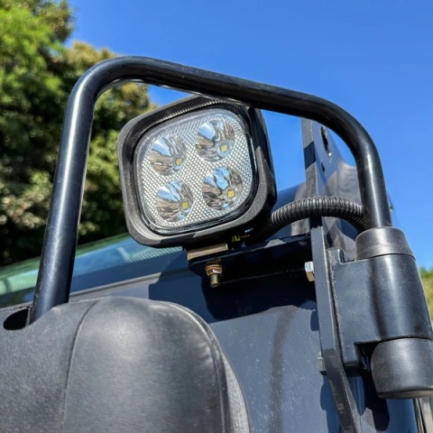 • W pełni wyposażona, ogrzewana kabina (otwierana przednia szyba, wycieraczka, radio, wentylator, nagrzewnica, gaśnica).